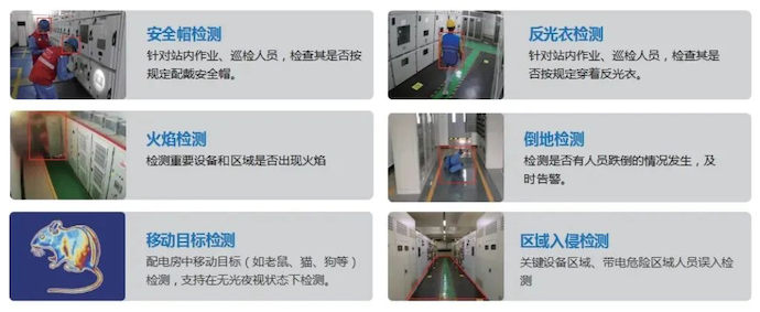 In the field of intelligent safety supervision, we have implemented multiple intelligent analysis functions, including but not limited to trip detection, perimeter monitoring, face detection and recognition, helmet wearing detection and color recognition, high-precision recognition of vehicle and license plate information, as well as intelligent detection and recognition of four specific targets such as smoking, making phone calls, uniform wearing, vest wearing, etc. By utilizing AI and big data analysis technology, intelligent identification and warning of safety risks in the safety production process can be carried out, improving the accuracy and efficiency of safety supervision and ensuring the safety and stability of power production.