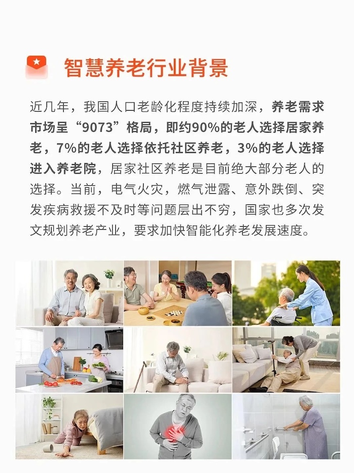 New Year's Day is approaching, indicating that the New Year is coming, and it is a happy time for family reunion. When going home to accompany the elders, don't forget to choose a set of appropriate smart pension solutions, and provide the elders with supporting products, so that the pension life is comfortable, more assured!