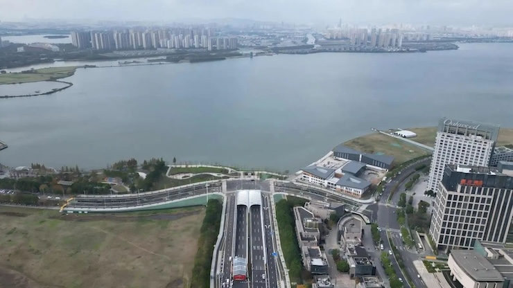 獨(dú)墅湖南隧道建成后,吳中區(qū)郭巷街道至工業(yè)園區(qū)科教創(chuàng)新區(qū)的車程由30分鐘縮短為5分鐘,極大地方便了兩地居民的通勤,真正體現(xiàn)了“人民城市人民建、人民城市為人民”的設(shè)計(jì)理念。