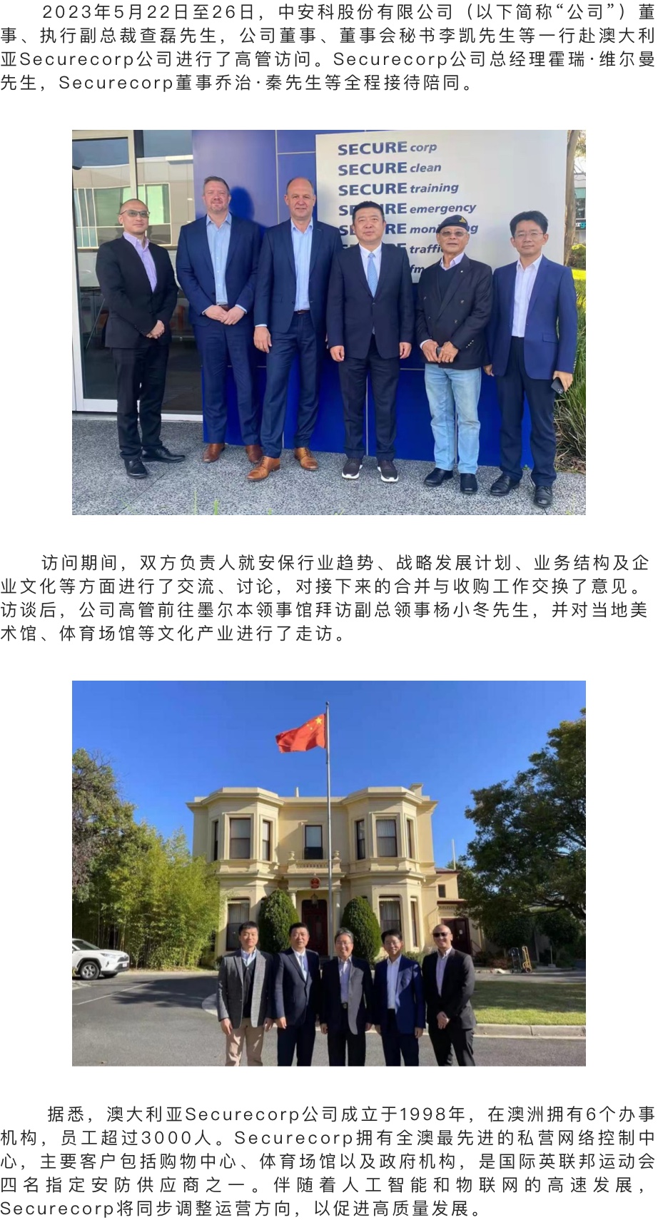 中安科股份有限公司高管赴澳大利亞Securecorp公司參觀訪問