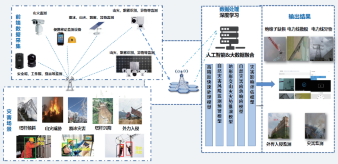 輸電線路可視化 AI 終端設(shè)備可以實現(xiàn)輸電線路通道環(huán)境、隱患部位、設(shè)備狀態(tài)、作業(yè)現(xiàn)場、應(yīng)急搶修、山火防范六個可視化。