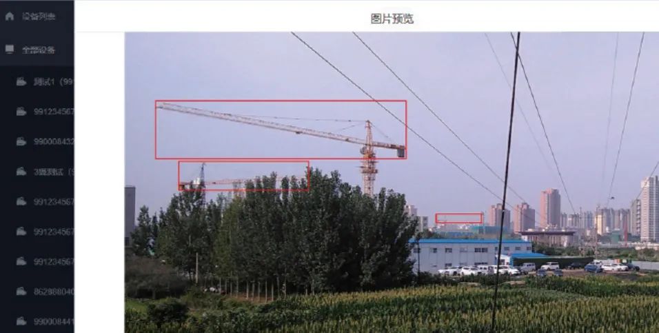 通過 AI 智能識別分析視頻畫面,可以對施工機械(吊車、塔員、挖掘機)、異物懸掛、煙火等進(jìn)行識別。