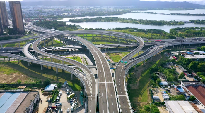 本次獲獎(jiǎng)的吳中大道東段暨南湖路快速路工程,是蘇州市“井字加環(huán)”骨架路網(wǎng)及吳中區(qū)“一環(huán)四射一聯(lián)”快速路網(wǎng)規(guī)劃中環(huán)南線的重要組成部分。本項(xiàng)目引入智慧交通系統(tǒng),設(shè)置交通信號(hào)自適應(yīng)配時(shí)控制系統(tǒng)、交通流量微波雷達(dá)檢測(cè)系統(tǒng)和交通誘導(dǎo)信息發(fā)布系統(tǒng),有效提升了道路通行能力;系統(tǒng)同時(shí)配置了高清視頻監(jiān)控系統(tǒng)和視頻檢測(cè)電子警察抓拍系統(tǒng),規(guī)范了道路交通安全通行秩序。