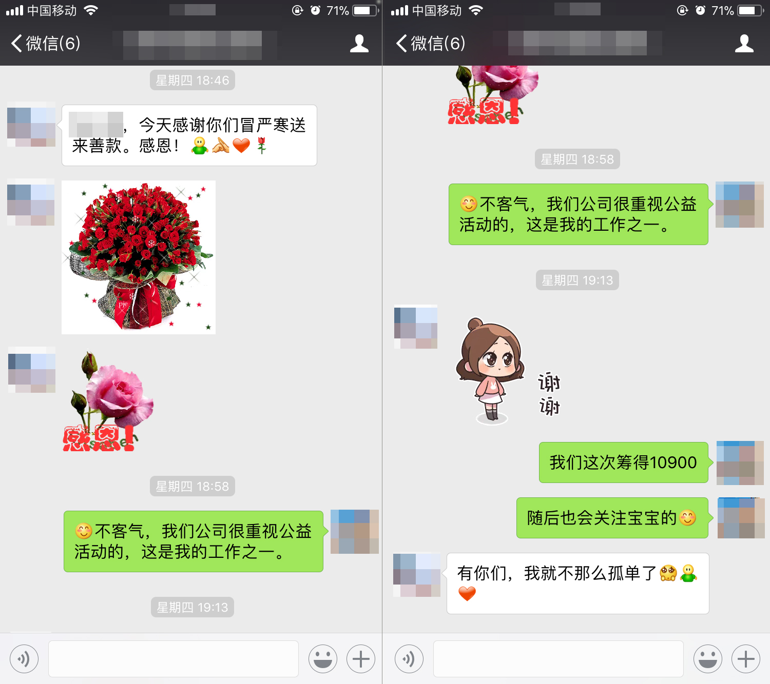 1月中旬,在活動(dòng)接近尾聲之際,中安科股份派遣代表前往雙胞胎母親丁女士工作地點(diǎn),將所有善款10900元親自交予她本人手中。丁女士接到善款之后非常感動(dòng),在志愿者走后再次發(fā)微信表示感激之情,“謝謝你們冒嚴(yán)寒送來(lái)善款,有了你們,我就不那么孤單了”。