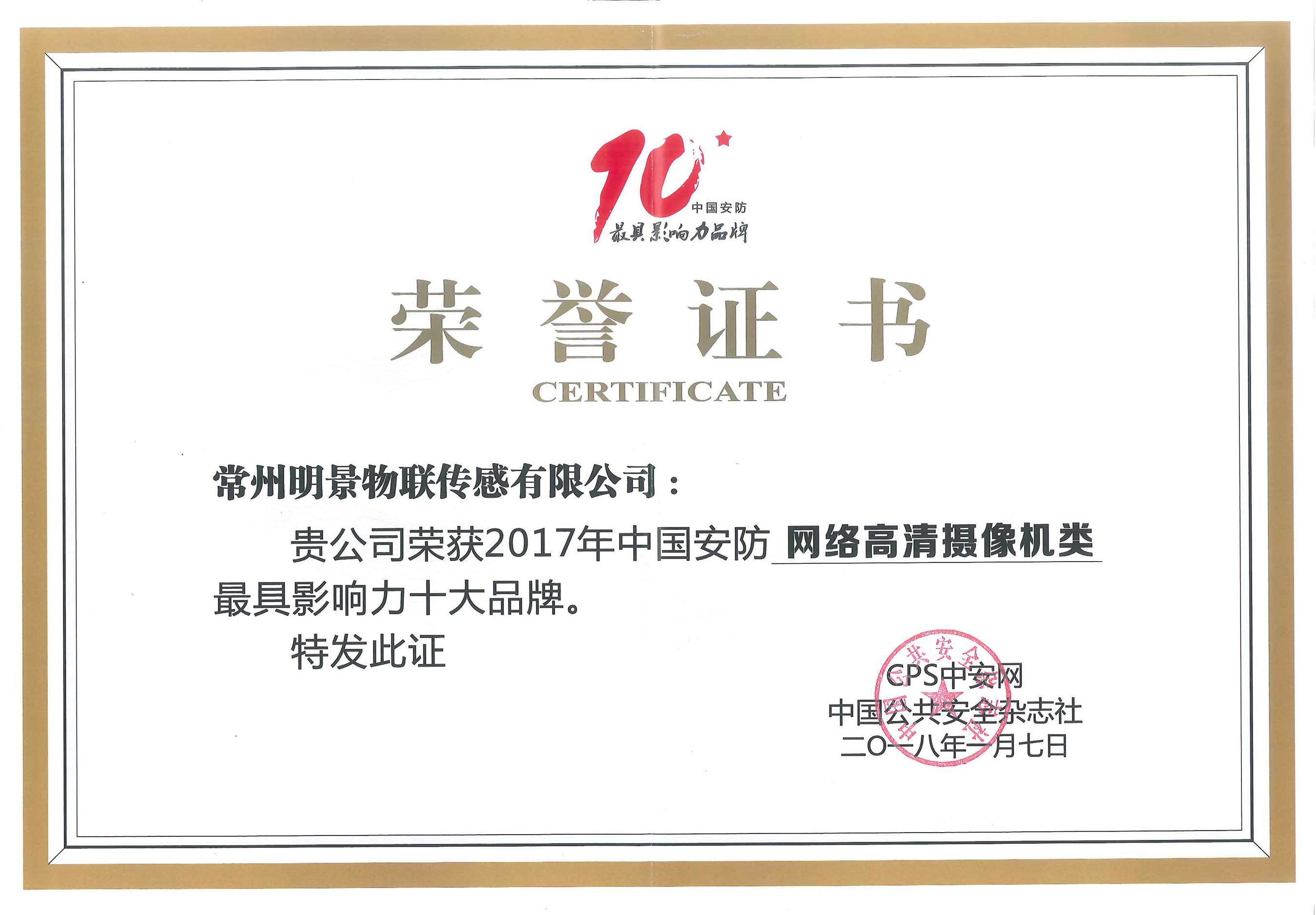 近日,以“數(shù)字安防、智能交通、智慧城市”為主題,由深圳市安全防范行業(yè)協(xié)會(huì)、深圳市智能交通行業(yè)協(xié)會(huì)、深圳市智慧城市產(chǎn)業(yè)協(xié)會(huì)、全國城市安防協(xié)會(huì)合作互助聯(lián)盟、中國公共安全雜志社等主辦的“2018全國安防界迎春團(tuán)拜會(huì)”在深圳世界之窗凱撒宮隆重舉行。中安科股份成員企業(yè)常州明景物聯(lián)傳感有限公司(以下簡稱明景)憑借其產(chǎn)品研發(fā)實(shí)力脫穎而出,榮獲2017年中國安防“網(wǎng)絡(luò)高清攝像機(jī)類”最具影響力十大品牌。