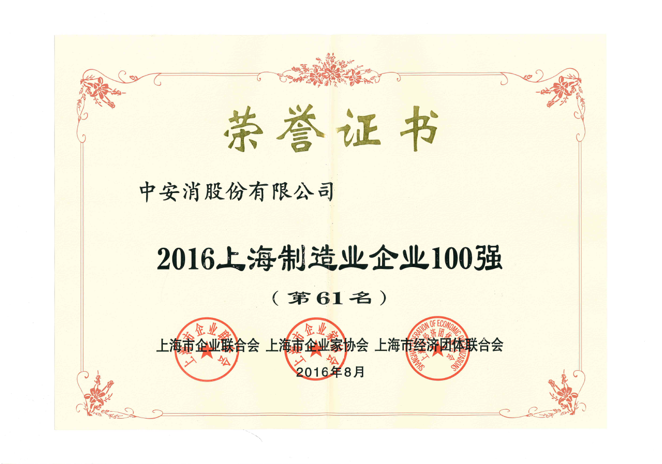 此次入選百強(qiáng)企業(yè),體現(xiàn)了中安科股份優(yōu)秀的經(jīng)營業(yè)績及強(qiáng)大的綜合實(shí)力。未來,中安科股份將抓住傳統(tǒng)產(chǎn)業(yè)轉(zhuǎn)型升級的時(shí)代機(jī)遇,勵精圖治,銳意進(jìn)取,為上海經(jīng)濟(jì)平穩(wěn)較快發(fā)展作出更大貢獻(xiàn)。