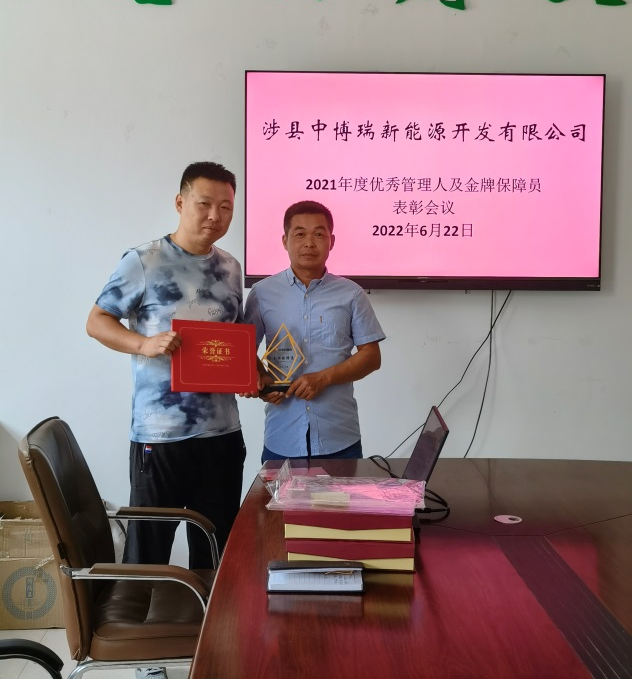 表彰大會上,由公司總經(jīng)理鄭相紅先生為陳小亮、付偉偉頒發(fā)了獎杯、榮譽證書及感謝信。