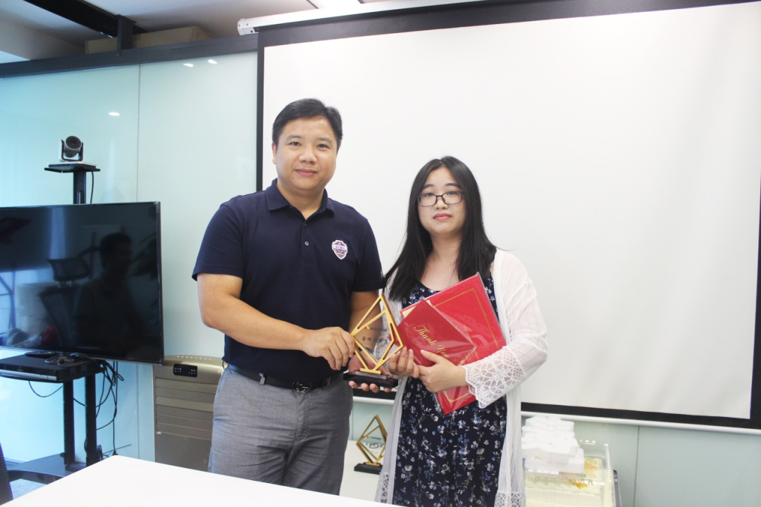 表彰大會上,由公司總經(jīng)理季益華先生為徐中艦頒發(fā)了獎杯、榮譽證書及感謝信,楊洪磊因公未能出席現(xiàn)場。