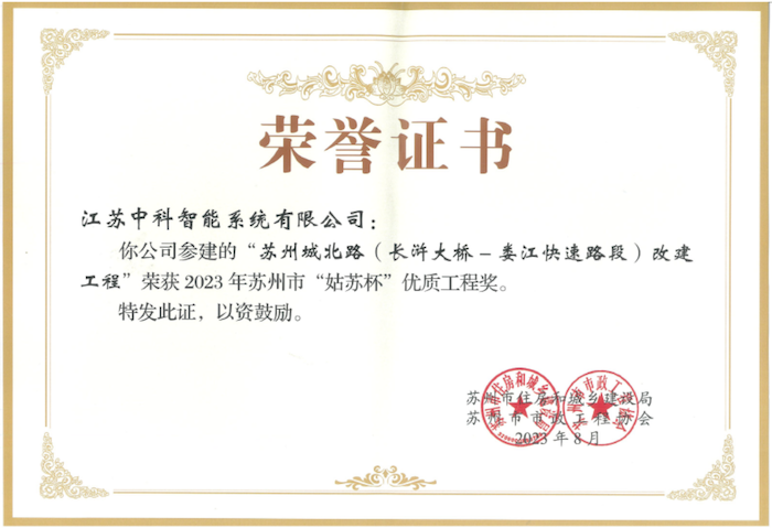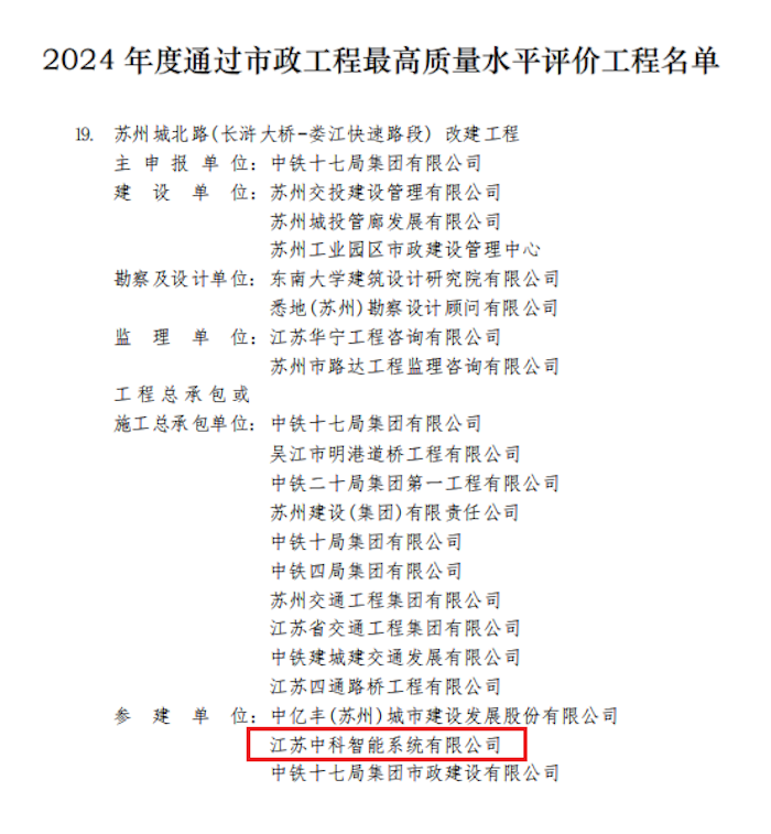 在項(xiàng)目建設(shè)過程中,中科智能始終堅(jiān)持以“創(chuàng)建平安工地、鑄造精品工程”為目標(biāo),以質(zhì)量、安全為中心,嚴(yán)格按照施工組織方案實(shí)施,順利完成了各個(gè)系統(tǒng)的建設(shè)與交付。“市政工程最高質(zhì)量水平評價(jià)”是全國市政工程行業(yè)在工程質(zhì)量方面最高的評價(jià)獎(jiǎng)項(xiàng),代表市政工程行業(yè)同時(shí)期國內(nèi)先進(jìn)水平。此次榮譽(yù)的取得,標(biāo)志著中科智能在市政工程建設(shè)領(lǐng)域又一新收獲。同時(shí),本項(xiàng)目先后榮獲過“姑蘇杯”、“鐵建杯”,體現(xiàn)了中科智能在施工管理、工程質(zhì)量、科技創(chuàng)新等方面均達(dá)到了全國市政建設(shè)行業(yè)一流水平。