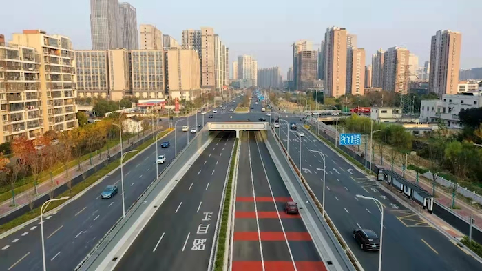 蘇州城北路(長滸大橋-婁江快速路段)改建工程位于蘇州市中心城區(qū)北部,設(shè)計(jì)標(biāo)準(zhǔn)時(shí)速60公里/小時(shí),路線全長約4.8km,隧道為東西向下穿隧道,起于江月路,終于江宙路,同時(shí)下穿地鐵2號(hào)線以及地鐵4號(hào)線,雙洞6車道,隧道全長1.5km。
